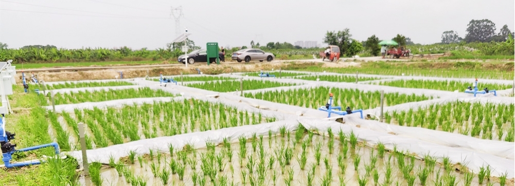 廣東省農業科學院農業資源與環境研究所水稻試驗基地位于廣州市增城石灘鎮高門村的30畝水稻田中,廣州賽通科技有限公司為基地提供軟硬件一體化解決方案,搭建基于農業物聯網的"策略灌溉",實現綠色健康水稻數字化生產。