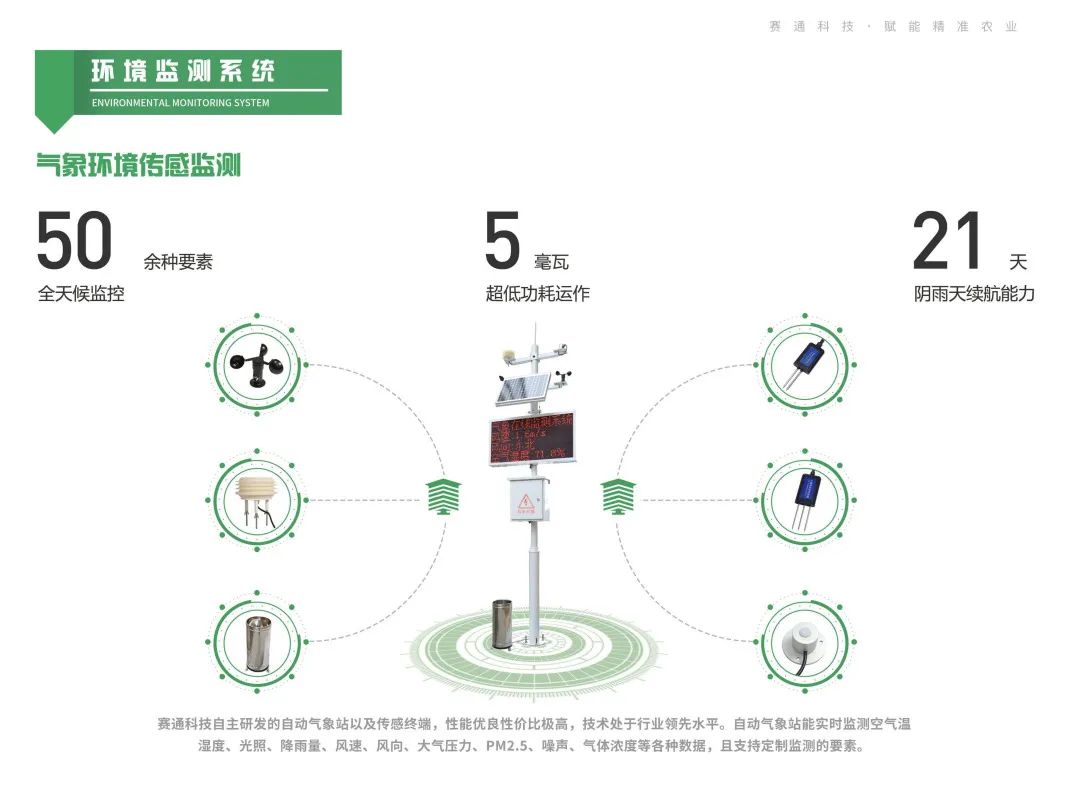 通過賽通科技?xì)庀蟓h(huán)境監(jiān)測(cè)設(shè)備、水肥灌溉設(shè)備、蟲情測(cè)報(bào)設(shè)備、大棚控制設(shè)備等系列終端設(shè)備實(shí)施有效現(xiàn)場(chǎng)干預(yù),以“精準(zhǔn)定時(shí)、定位、定量控制”全方位助力各類農(nóng)業(yè)生產(chǎn)場(chǎng)景的智慧化、數(shù)字化,控制生產(chǎn)成本與降低資源浪費(fèi),提高農(nóng)業(yè)生產(chǎn)效益,實(shí)現(xiàn)農(nóng)業(yè)可持續(xù)發(fā)展,賦能國(guó)家鄉(xiāng)村振興。