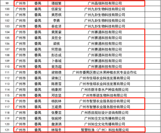 廣州市智慧農業服務股份有限公司及體系內各公司(賽通科技、智慧牧漁、晶瑞科技等)申報并獲評審認定共11人!