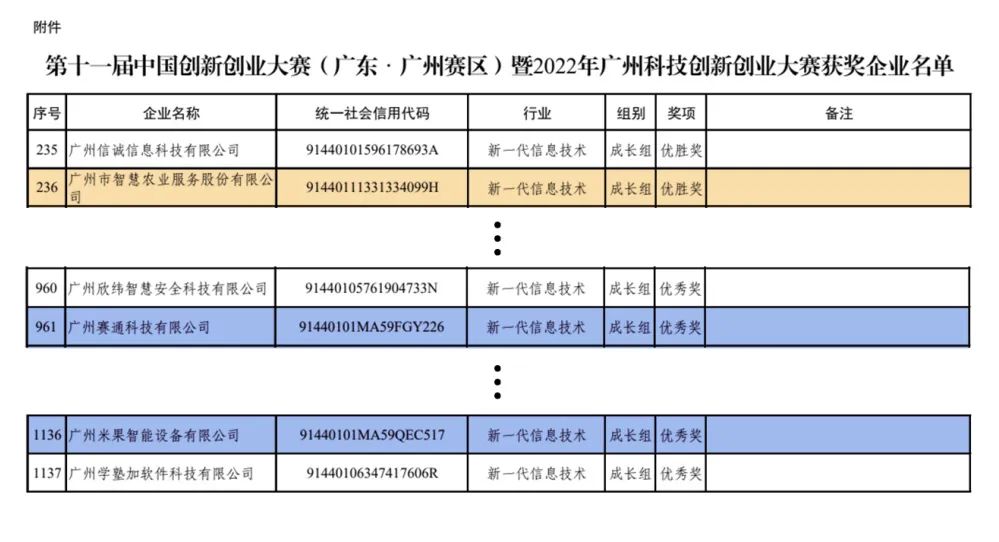 11月9日,經(jīng)過(guò)近四個(gè)月的激烈角逐和路演競(jìng)賽,第十一屆中國(guó)創(chuàng)新創(chuàng)業(yè)大賽(廣東·廣州賽區(qū))暨2022年廣州科技創(chuàng)新創(chuàng)業(yè)大賽最終獲獎(jiǎng)名單新鮮出爐。廣州市智慧農(nóng)業(yè)服務(wù)股份有限公司(以下簡(jiǎn)稱“智慧農(nóng)業(yè)”)攜手子公司廣州賽通科技有限公司、廣州米果智能設(shè)備有限公司分別榮獲廣州賽區(qū)優(yōu)勝獎(jiǎng)和優(yōu)秀獎(jiǎng)。