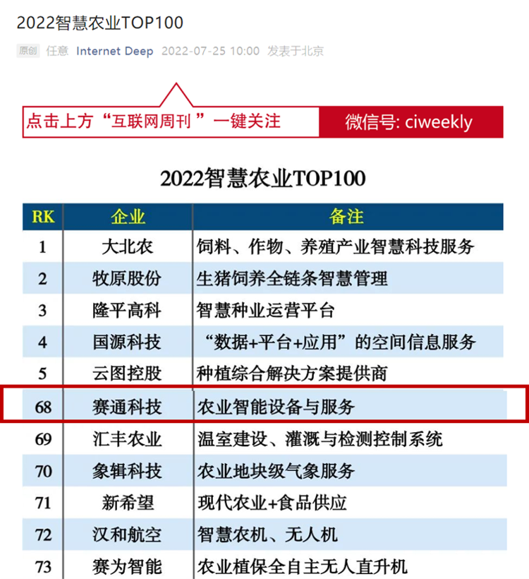 4、賽通科技獲評“2022智慧農(nóng)業(yè)TOP100”