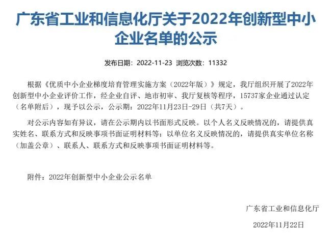 11月22日,廣東省2022年創(chuàng)新型中小企業(yè)名單公示,廣州市智慧農(nóng)業(yè)服務股份有限公司與子公司廣州賽通科技有限公司、廣州米果智能設備有限公司以農(nóng)業(yè)產(chǎn)業(yè)鏈數(shù)字化升級服務及智慧食堂全鏈解決方案的創(chuàng)新成果成功被認定為“廣東省創(chuàng)新型中小企業(yè)”。