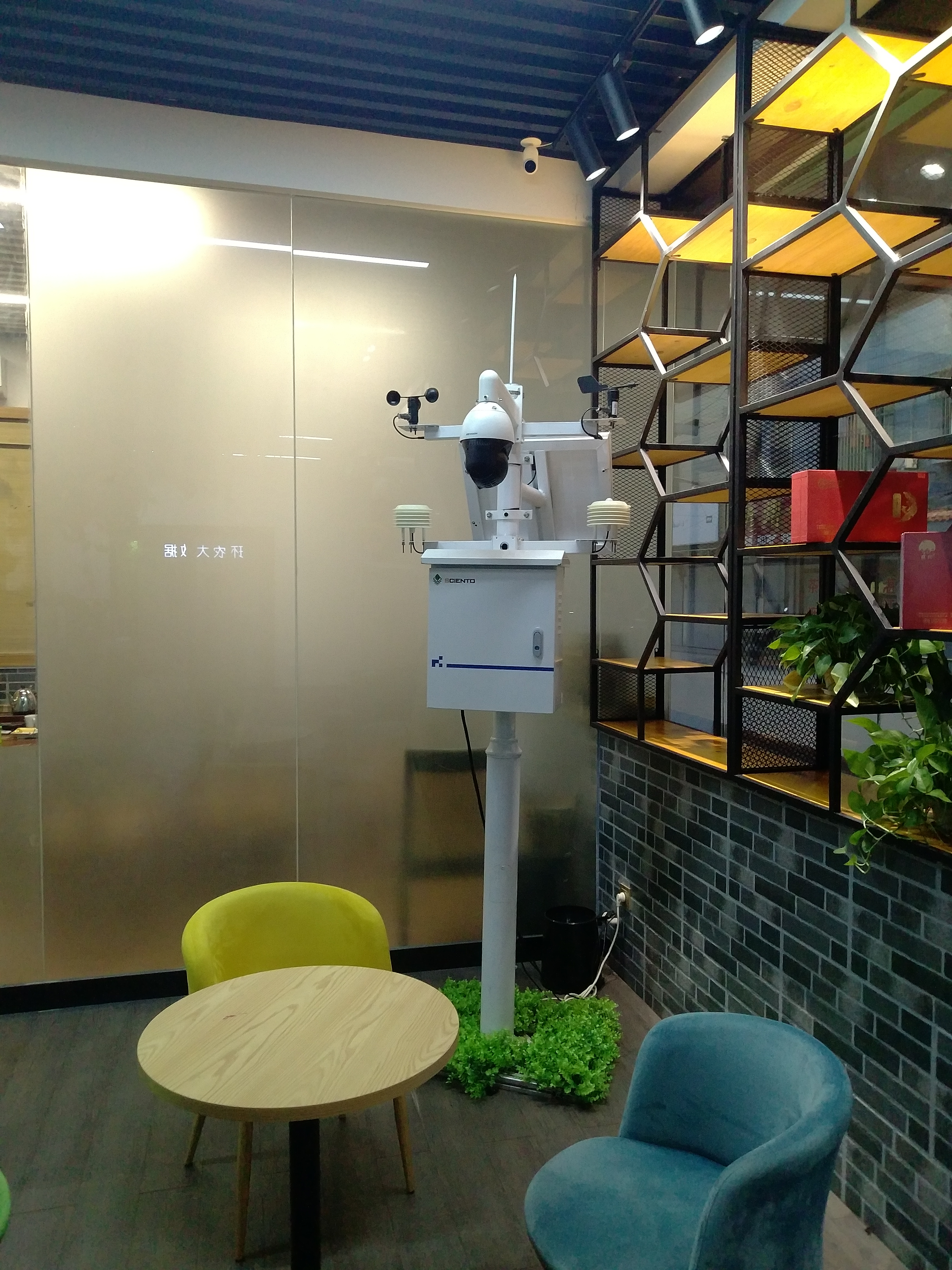實時監測、采集、傳輸、記錄安裝區域一定范圍里的空氣溫濕度、風速、風向、降雨量、光照度、噪聲、PM2.5、PM10等氣象環境因素