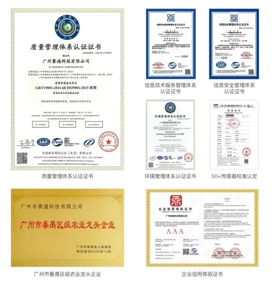 廣州賽通科技有限公司成立于2016年,以“賦能精準農業“為使命,研發、生產、銷售涵括土壤檢測、氣體檢測、液體檢測、環境檢測等50多種農業智能傳感器,以及系列軟硬件設備及方案,如農業四情監測系統、大棚智能控制系統、水肥一體化灌溉系統等,扎實推動我國農業“高產、優質、高效、綠色、安全”的穩步發展。