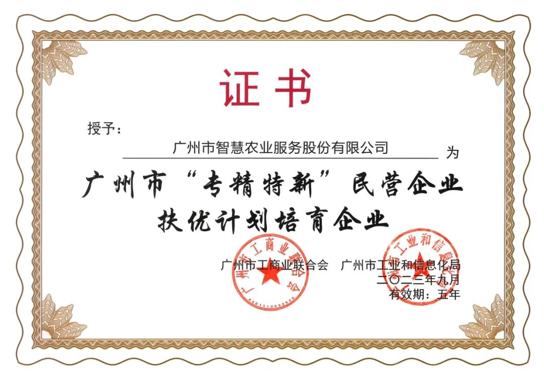 9月,廣州智慧農(nóng)業(yè)入選廣州市“專精特新”民營(yíng)企業(yè)扶優(yōu)計(jì)劃培育企業(yè)