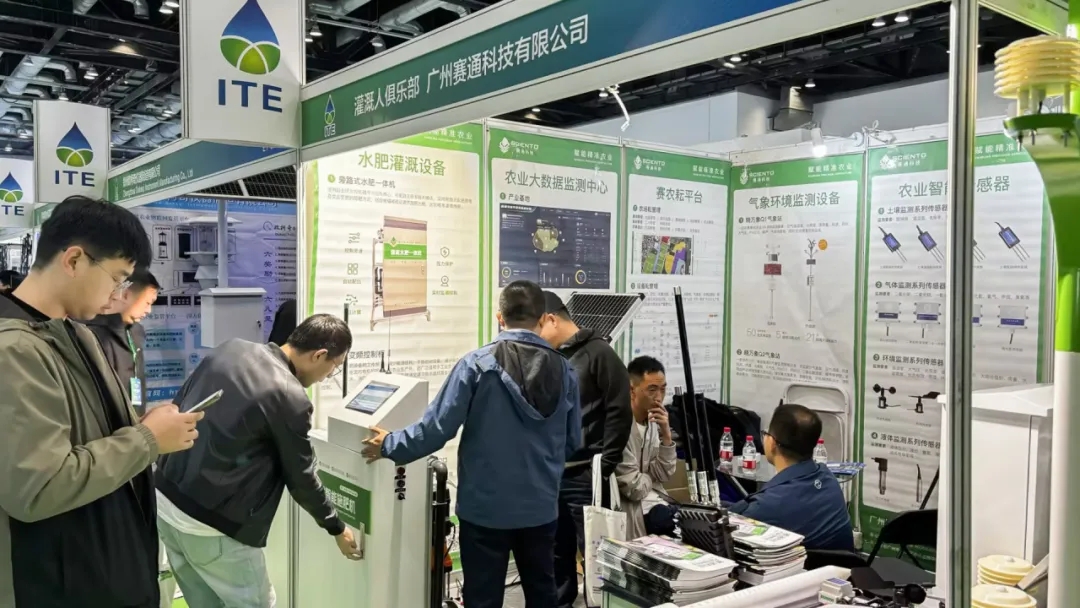 在為期三天的灌溉展上,廣州賽通科技有限公司攜自主研發、生產的注入式水肥機、曉萬象Q1氣象站、LoRa無線采集灌溉控制器等智能設備和數字農業解決方案精彩亮相,向參展同行和專家學者們展示賽通科技賦能精準農業的科技成果。