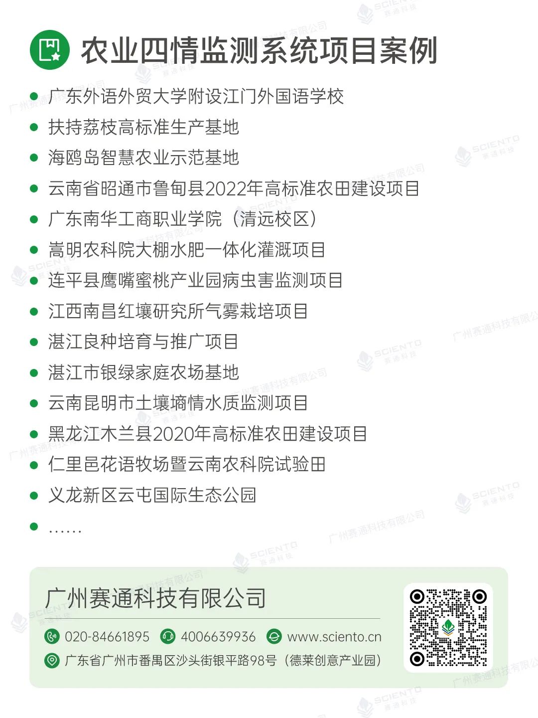 廣州賽通科技有限公司自主研發(fā)農(nóng)業(yè)四情監(jiān)測系統(tǒng)解決方案,搭配賽農(nóng)耘®智慧農(nóng)業(yè)管理平臺實現(xiàn)實時苗情、墑情、蟲情和災(zāi)情監(jiān)測感知,構(gòu)建作物精準決策的數(shù)據(jù)支撐。