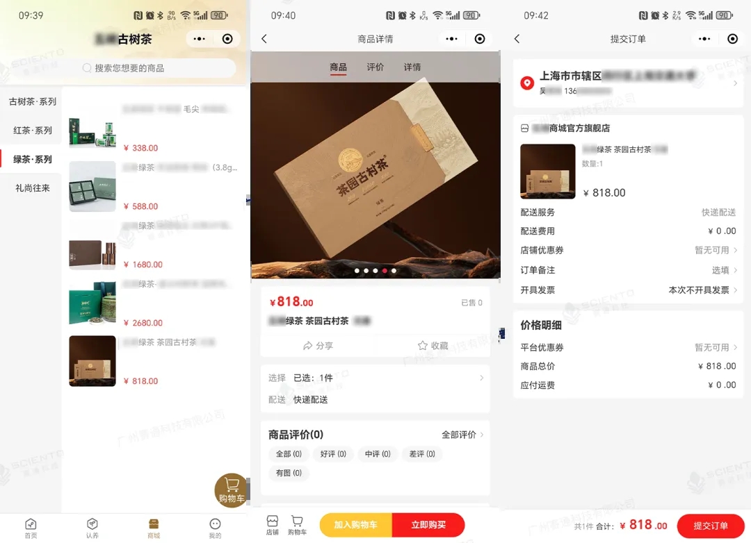 小程序可開通“商城”功能,除認養商品外,茶企還可在商城中上架茶葉產品,為用戶提供多元化選擇,讓用戶不僅能通過茶樹認養感受種植成就,還能便捷選購心儀茶葉,推動茶產業與文旅消費更加緊密融合。