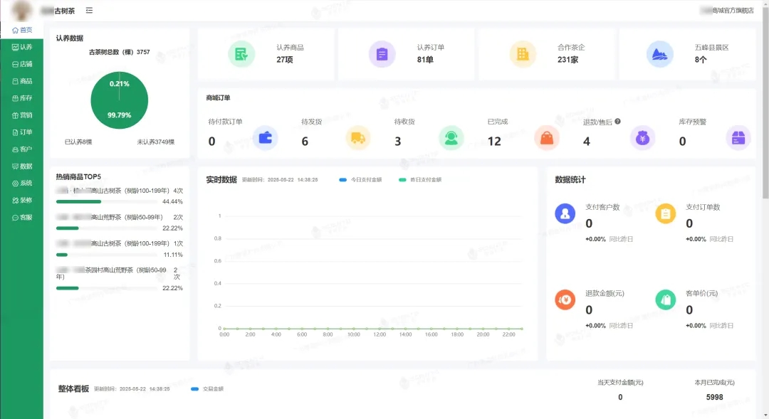 賽通科技可為上線認養小程序的茶企提供數字化管理客戶端與大數據可視化平臺,清晰展示認養情況、銷售數據、基地信息、農業監測數據、茶樹詳情、茶企簡介等內容,將茶企業務情況和茶葉生長狀況實時動態呈現,幫助茶企精準了解認養進度與消費者喜好,優化茶葉產品服務,讓茶產業乘數字化東風,賦能一二三產深度融合發展,煥發農文旅新活力。