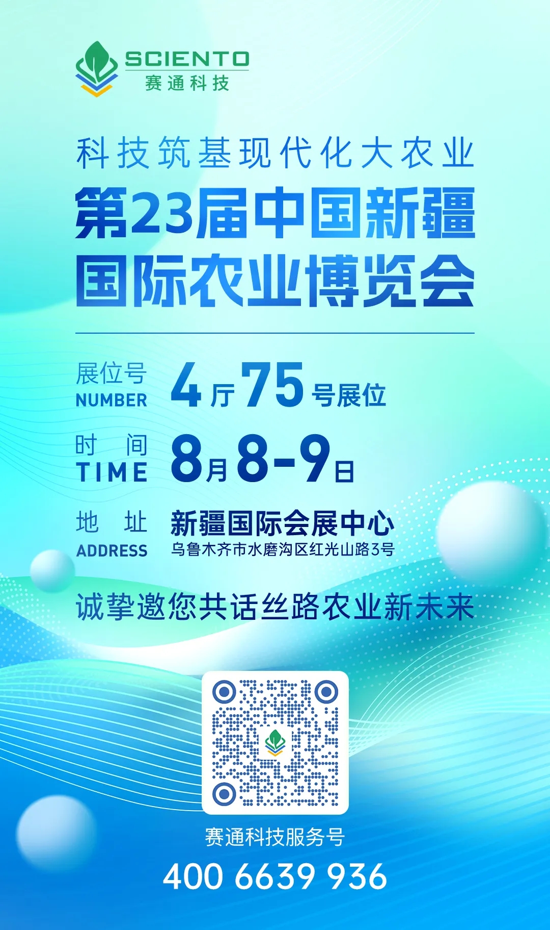 2025年8月8日-9日,廣州賽通科技有限公司誠邀您蒞臨新疆國際會展中心4廳75號展位,與我們共探新疆農業現代化路徑,共話絲路農業新未來!