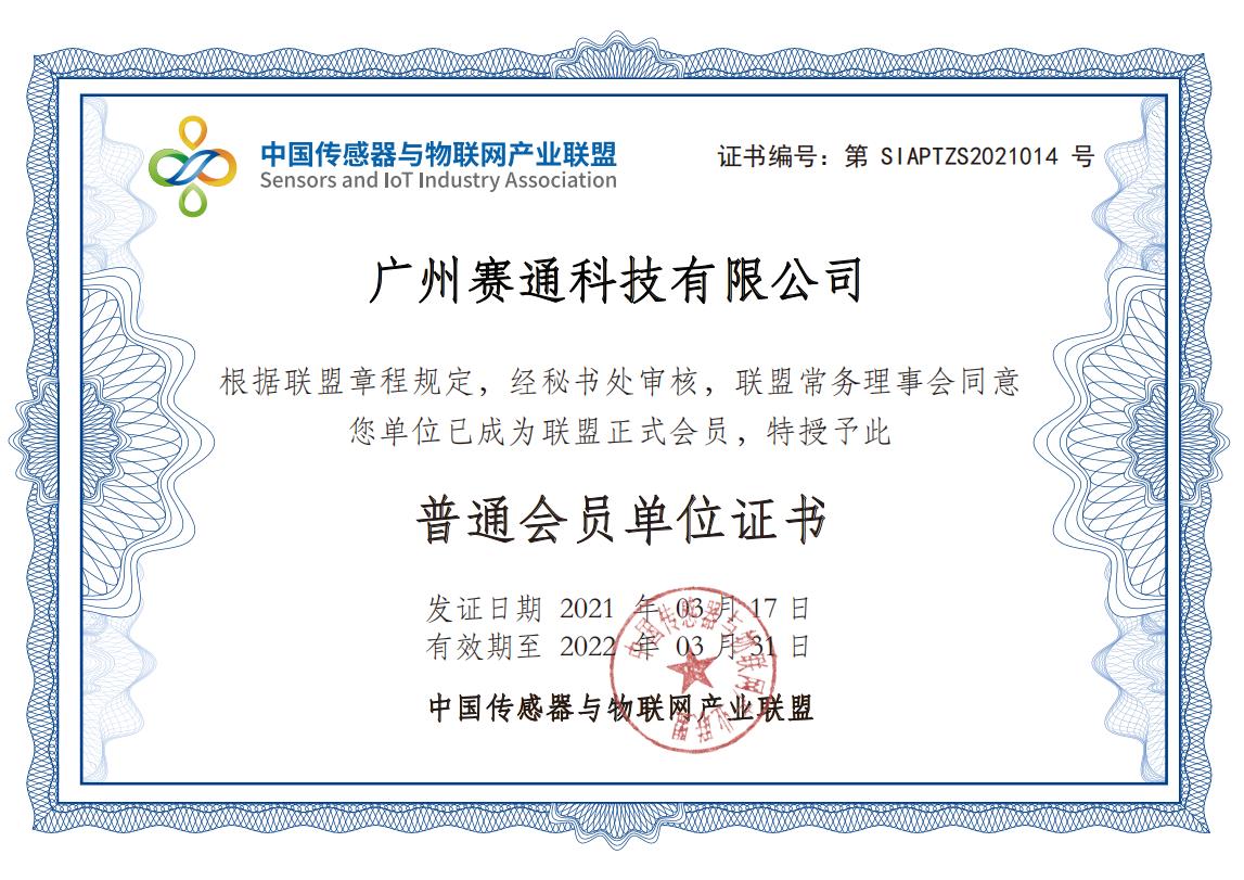 熱烈祝賀廣州賽通科技有限公司成為中國傳感器與物聯網產業聯盟會員