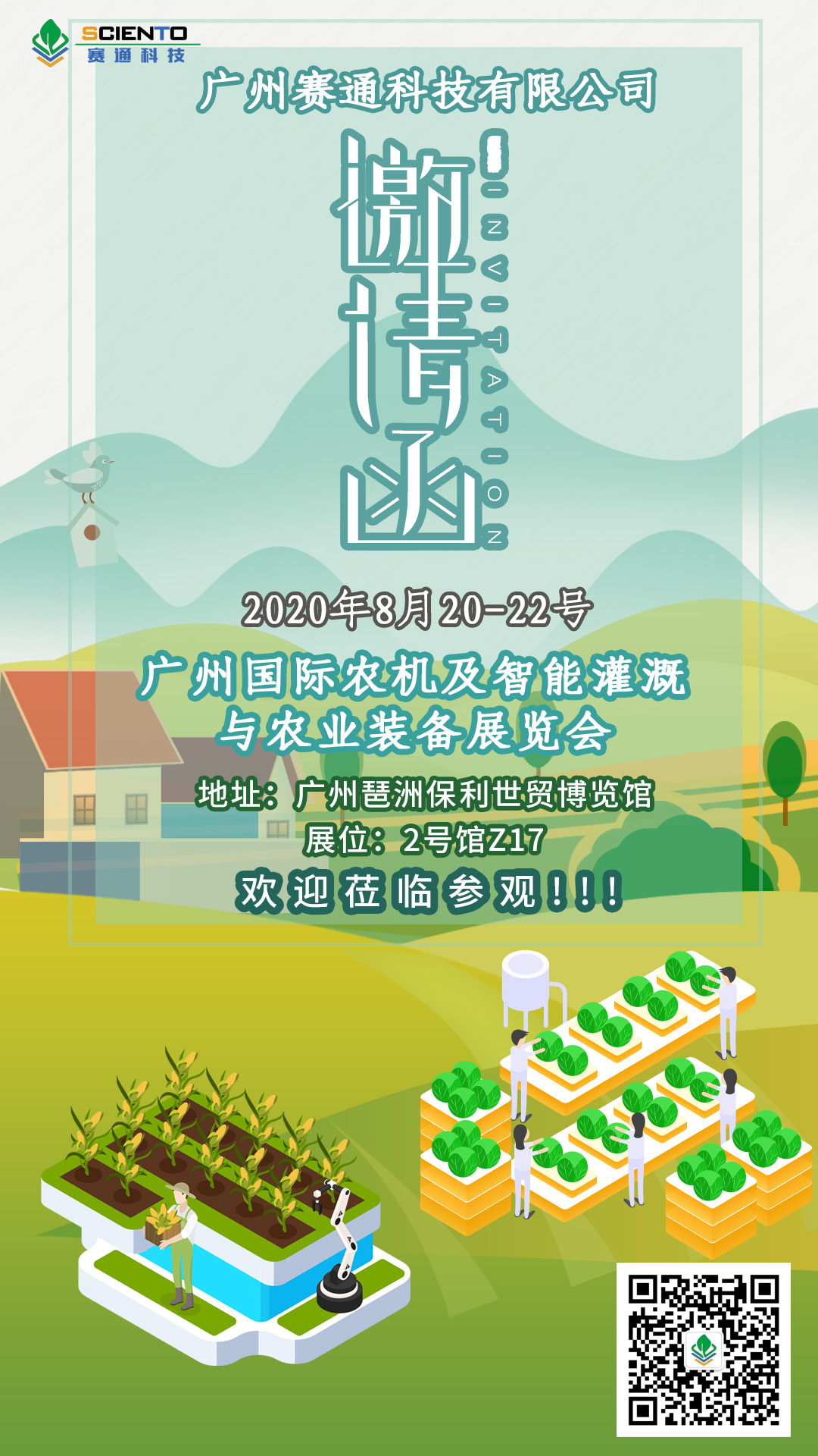 【展會邀請】廣州賽通科技參加2020廣州國際農(nóng)機及智能灌溉與農(nóng)業(yè)裝備展覽會,誠邀您到來!