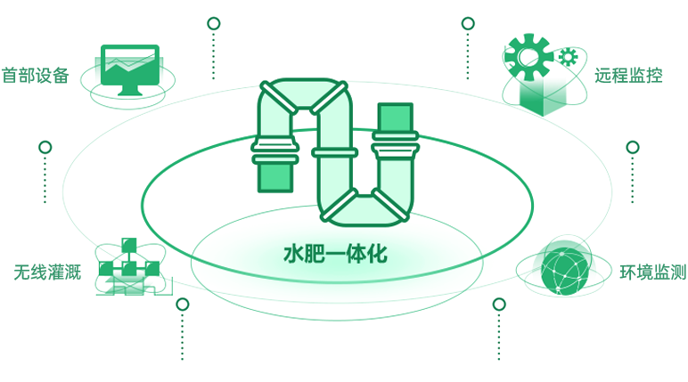 水肥一體化技術將灌溉與施肥融為一體,按土壤養分含量和作物種類的需肥規律特點,將可溶性固體或液體肥料,配兌成肥液;通過可控管道系統供水、供肥,使水肥相融后,由管道、噴槍或噴頭形成噴灌,均勻、定時、定量地噴灑在作物發育生長區域,使相應土壤始終保持疏松和適宜的含水量。還可根據不同作物的需肥特點、土壤環境和養分含量狀況、需肥規律情況進行不同生育期的需求設計,把水分、養分定時定量,按比例直接提供給作物。